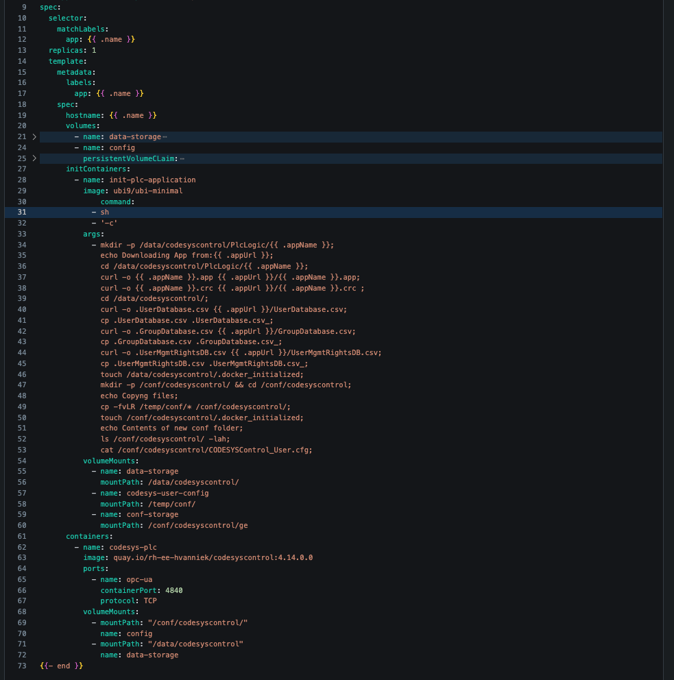 For this scenario, since our PLC controller is a generic image, this makes it handy to deploy multiple different applications and just template out the application parts.
